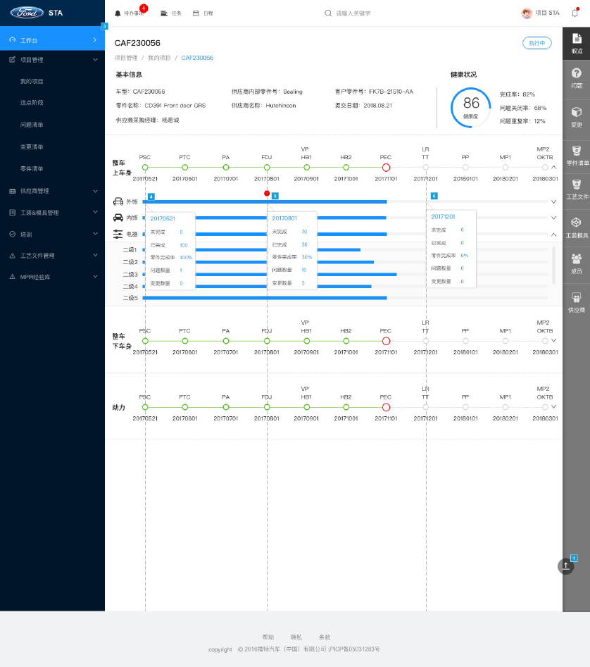 本项目是长安福特实施数字化管理转型的重大开创性项目,以传统燃油汽车生产和采购为场景的大型工业互联网质量管理系统。(因限于保密要求,本案例只展示部分项目过程及成果)