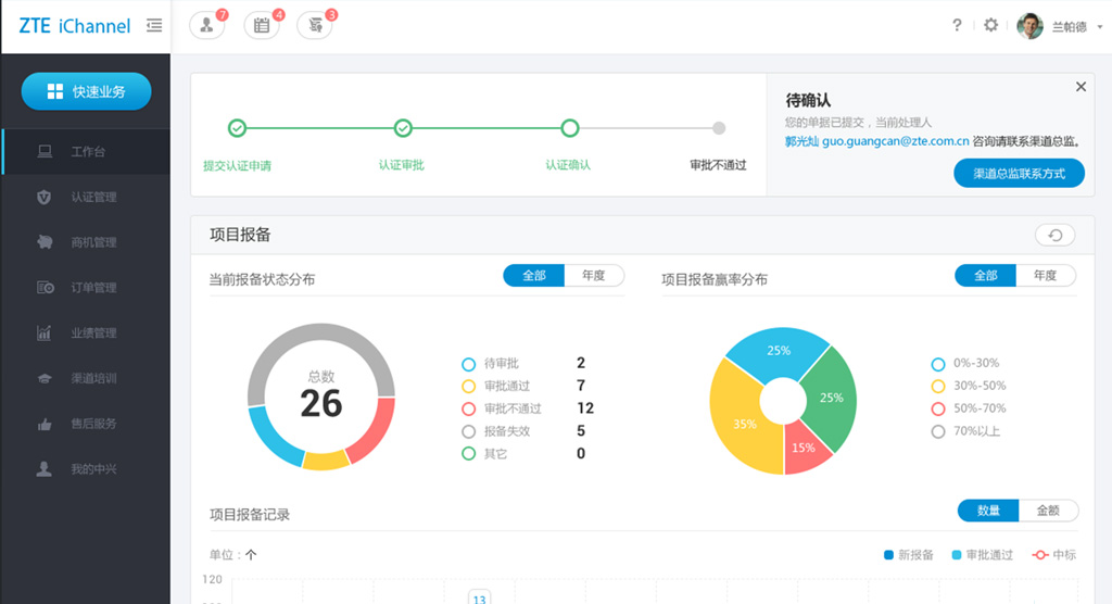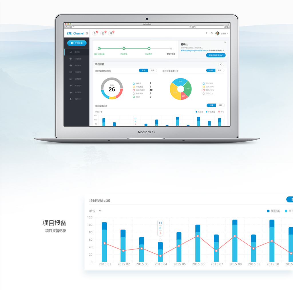 iChannel是在对渠道合作伙伴需求充分调研的基础上,进行大幅创新的商业智能工作空间。从合作伙伴注册认证,到项目报备和在线配置,再到订单与业绩返点结算,iChannel可以充分满足渠道业务管理的需求,更大化提升渠道管理效率。该项目是一次全新的升级,工作内容包含大量的用户访谈信息采集、用户需求调研、可用性分析;工作流程梳理重构、交互框架优化、界面视觉改版、动效设计及前端开发等。