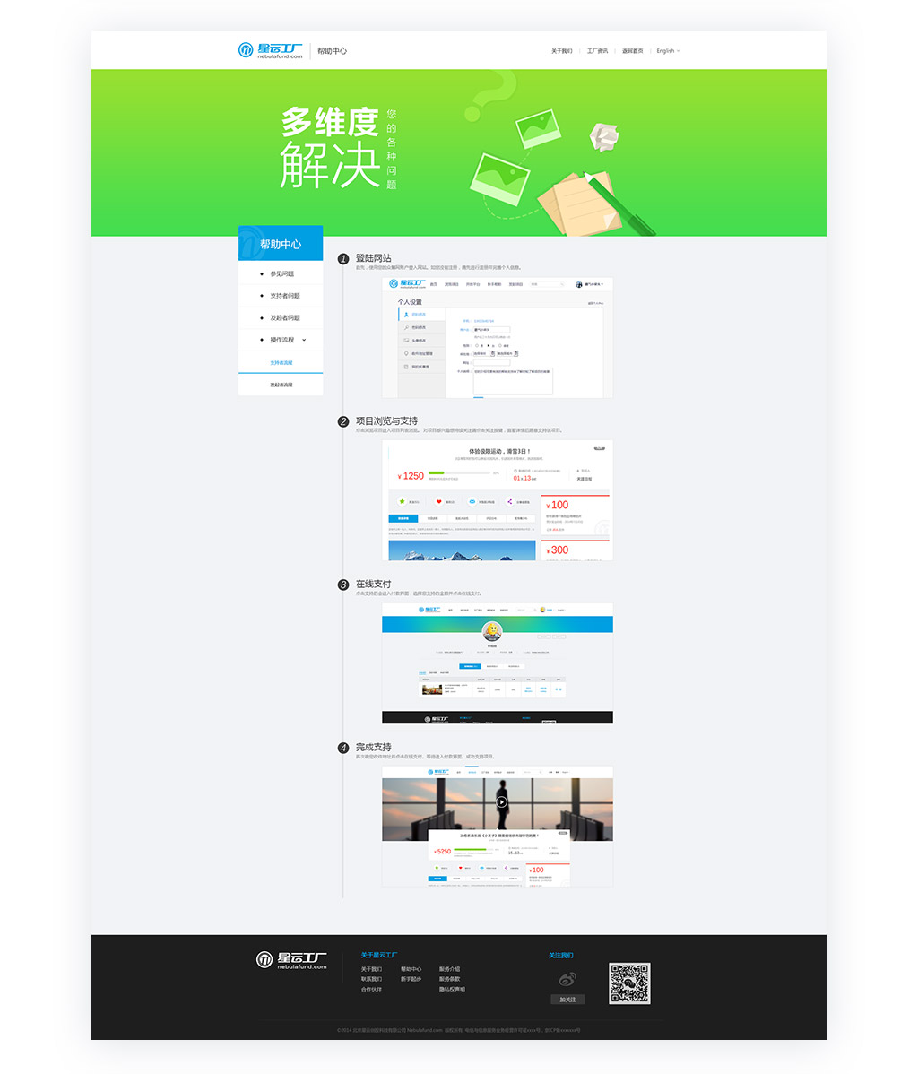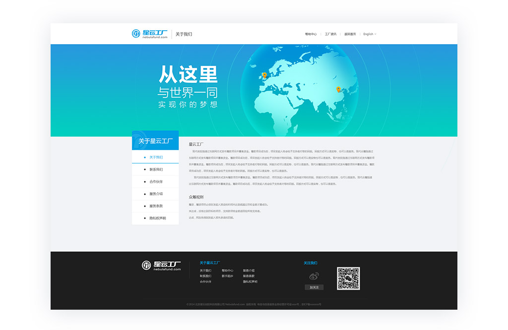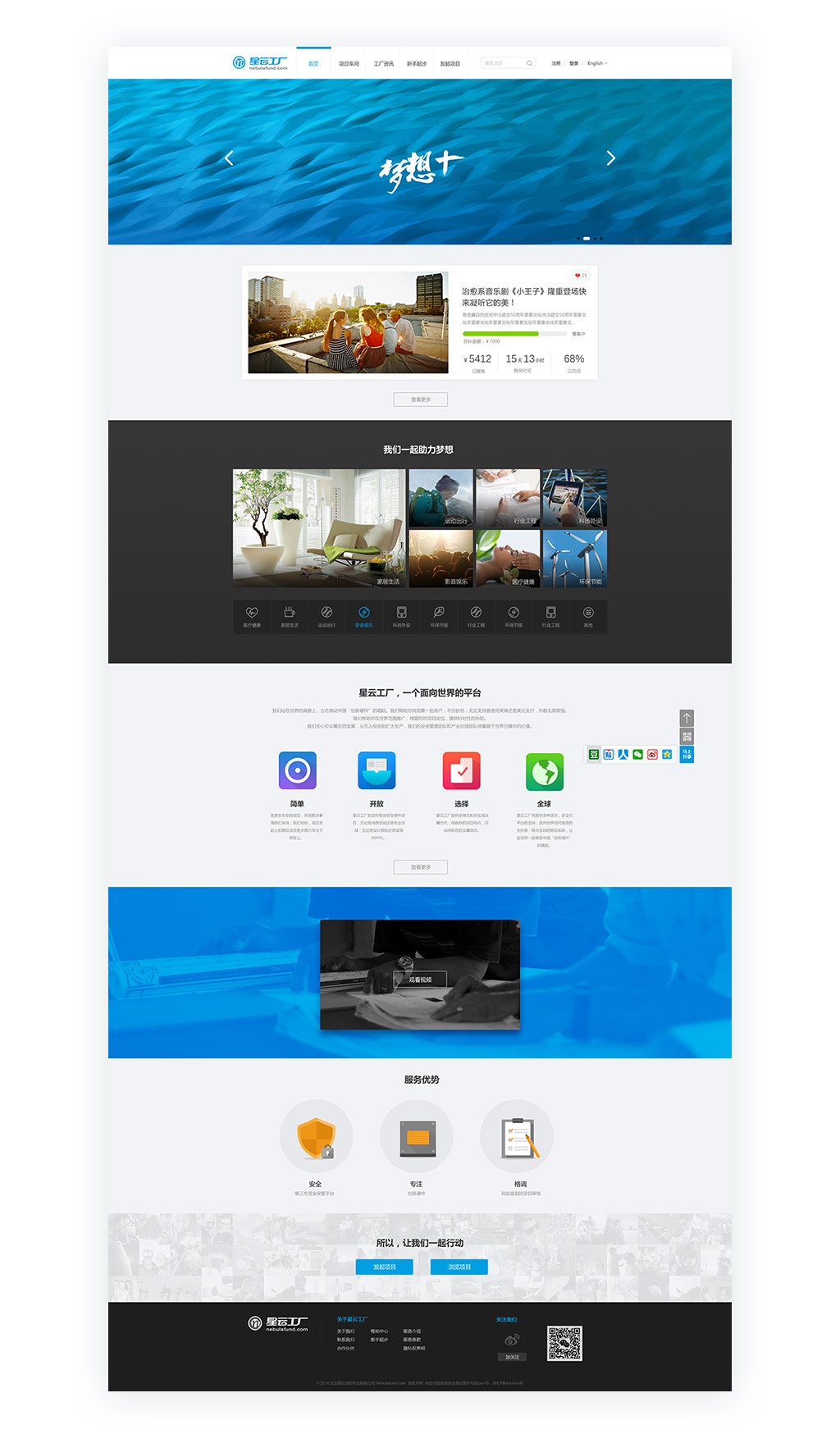 星云工厂的服务理念是:我们站在世界的肩膀上,立志推动中国“创新硬件”的崛起。我们帮助你找到批用户,不分肤色;无论支持者使用英镑还是美元支付,你都无需烦恼。我们帮助你在世界范围推广,根据你的项目定位,提供针对性的协助。我们关心你众筹后的发展,从引入投资到扩大生产,我们的投资管理团队和产业对接团队将着眼于世界引爆你的价值。